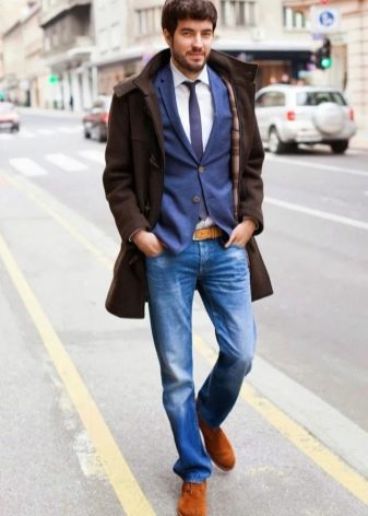 Les pantalons classiques peuvent être remplacés par des jeans de couleur foncée, mais les chaussures doivent être classiques. Les chaussures iront très bien.