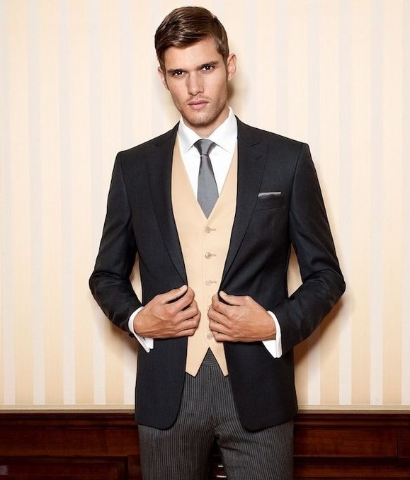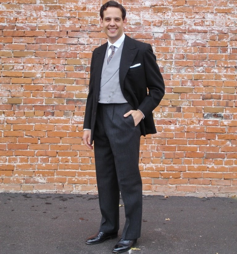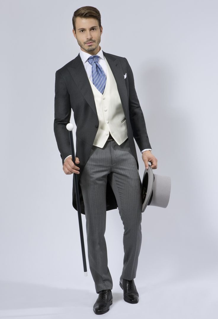 Les vêtements que l'on a l'habitude de porter aux occasions ci-dessus diffèrent selon l'heure de la journée. Si le soleil brille dehors, vous devez choisir une option appelée Robe du matin. Les principales caractéristiques de cette image sont un frac noir et un gilet de la même couleur.