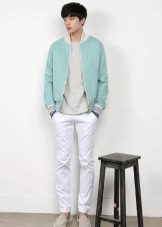 - Vestes les garçons coréens portent en dehors du costume. Ensuite, ils choisissent surdimensionné. Matériel de couture - tweed, velours côtelé. Ces vestes sont combinées avec des T-shirts, des T-shirts, des chemises, des sweats à capuche.