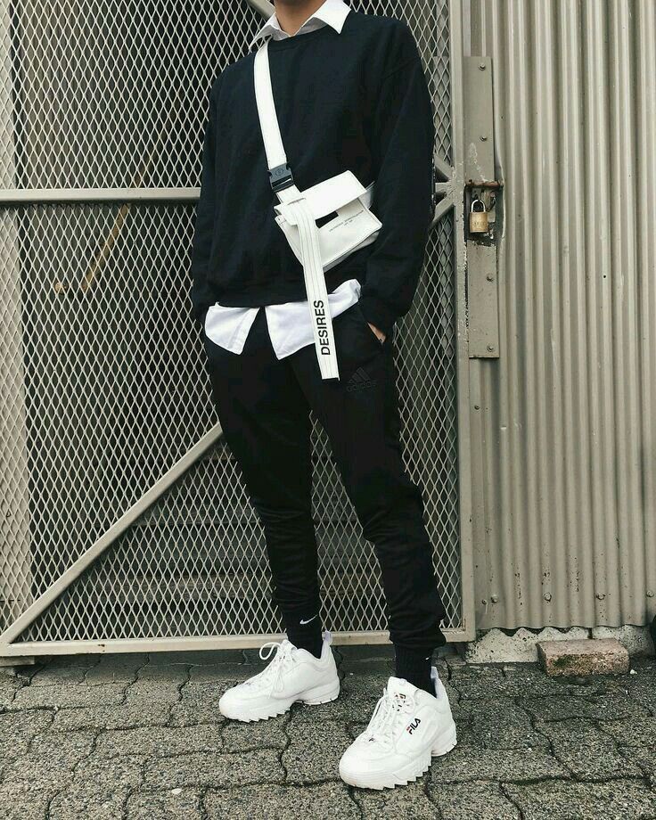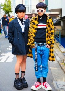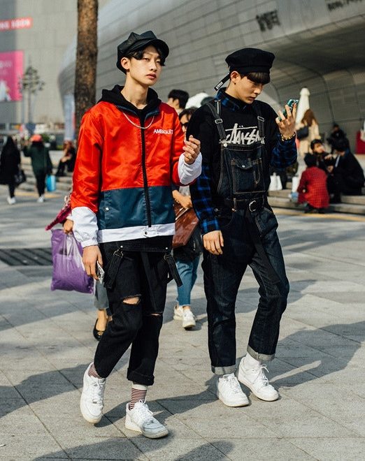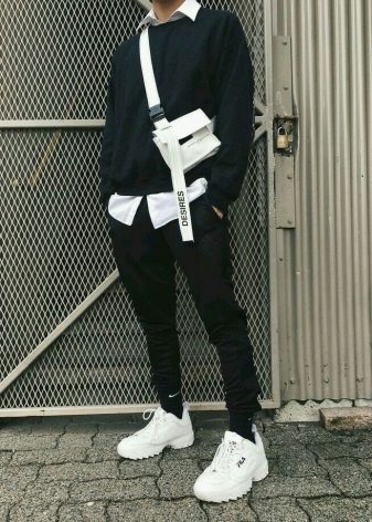 - Bien sûr, on ne peut manquer de mentionner des chaussures... L'élément dominant est les baskets. Les Coréens les mélangent avec n'importe quoi - à la fois avec des classiques et avec un look de rue typique.