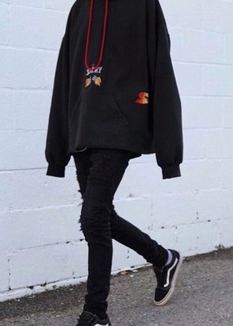 - Surdimensionné... Un élément presque indispensable de l'image. Sweats à capuche et sweat-shirts surdimensionnés, vestes surdimensionnées, doudounes et manteaux, t-shirts longs - tout cela est habilement combiné avec un pantalon ou un jean skinny, créant un nœud harmonieux.