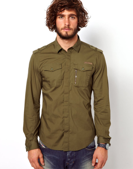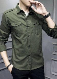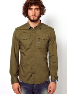 La chemise - C'est une chose qui est présente dans la garde-robe de presque tous les hommes. Cela s'applique également à ces messieurs qui préfèrent les looks de style militaire.Pour composer un nœud harmonieux dans le même sens, vous devez choisir un modèle actuel qui reste à la mode en toute saison. La solution idéale serait la chemise, ayant une coupe droite simple, faite d'un tissu grossier et dense de nuances vert foncé, gris ou olive. Permis Paysage sous forme de pagon ou de grandes poches.