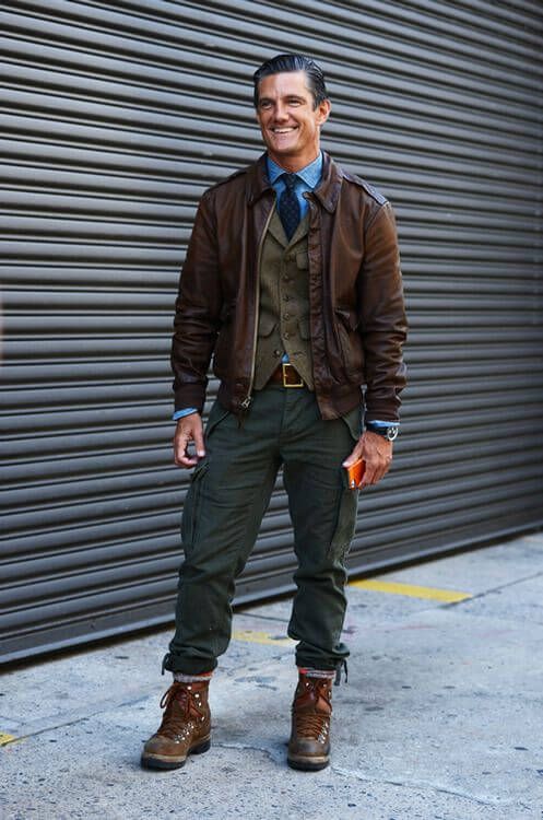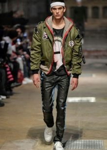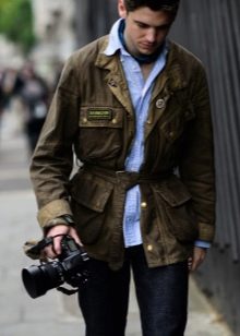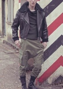 - Des composants supplémentaires sont souvent attachés aux vêtements de ce style. Ceux-ci peuvent être des poches plaquées, des fermetures à glissière massives, des inserts en cuir et d'autres éléments similaires. Ils rendent les vêtements non seulement plus pratiques, mais aussi masculins.