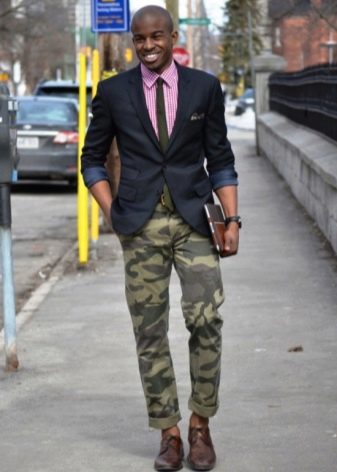 Il n'est pas recommandé d'utiliser une combinaison avec des costumes d'affaires. Dans le bon tandem avec les choses urbaines, l'image masculine se révélera harmonieuse et adaptée à presque toutes les situations.
