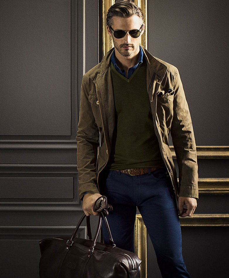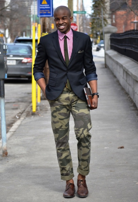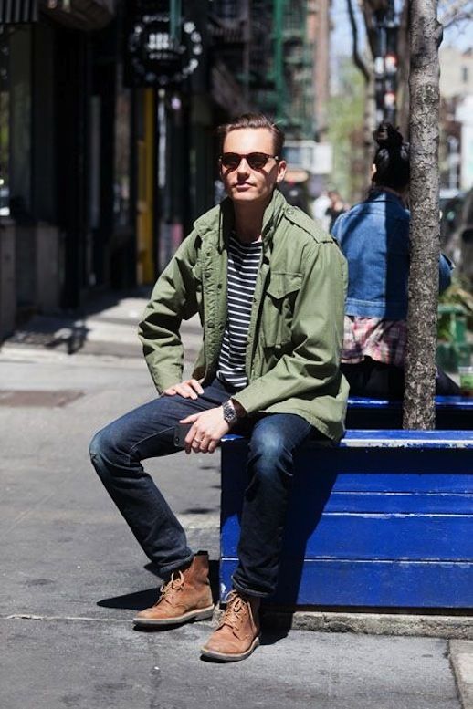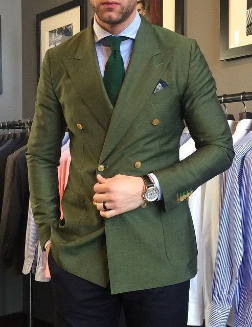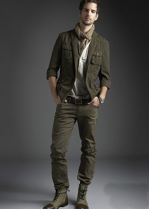 Regardez bien costumes complétés par des blazers verts, traditionnel pour le style militaire. Cet article de garde-robe peut être réalisé par analogie avec une veste militaire.