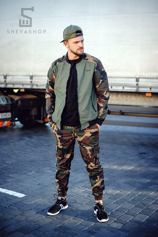- Des sports... Dans ce sens, un pantalon pratique et confortable conviendra. Ils peuvent avoir des poches plaquées supplémentaires. Pertinent dans un type similaire de combinaisons militaires et sportives, baskets de camouflage, parcs et bombardiers.