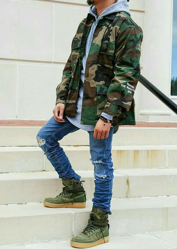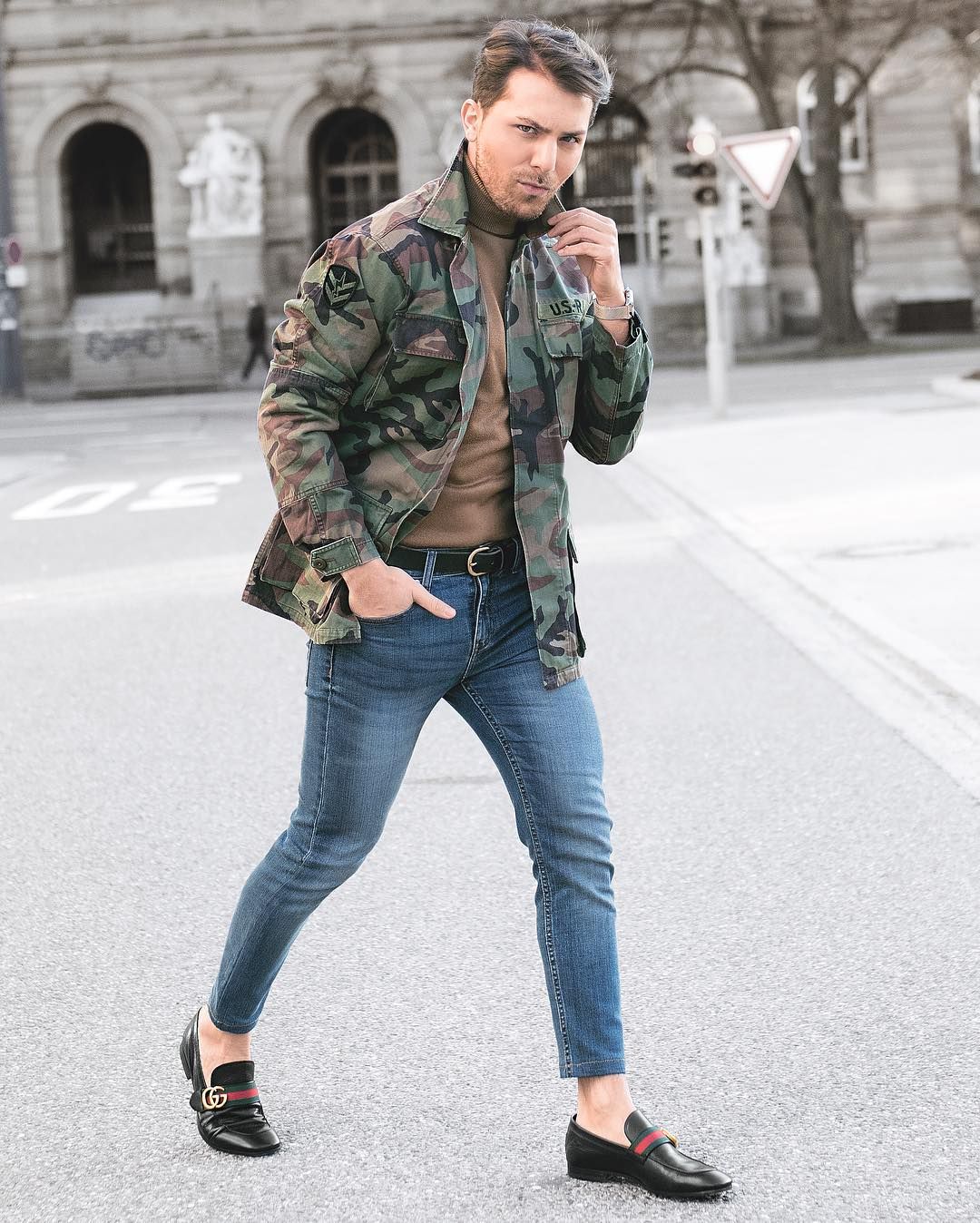 Tout vêtement à thème militaire doit être porté de deux manières. Combiné avec des pièces neutres, urbaines, décontractées telles que :