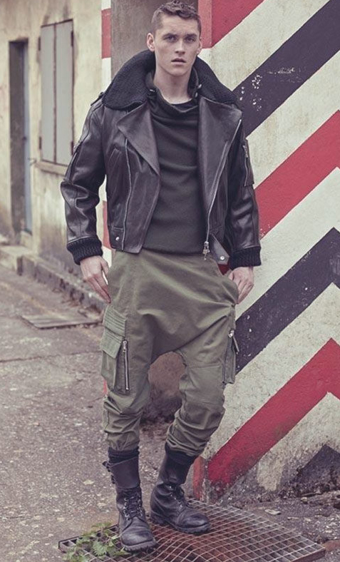 À l'aide de vêtements conçus dans un style militaire à la mode, il sera possible de souligner efficacement la brutalité et la masculinité de l'image.