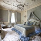 Le lit dans lequel la tête de lit est garnie d'un baldaquin est particulièrement impressionnant. Ce décor met l'accent sur le luxe et la grandeur de la chambre et crée en même temps une atmosphère privée.