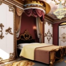 Les éléments de décoration dominent dans la pièce et chacun est sélectionné en tenant compte de la palette de couleurs générale de la pièce. Grâce à la réflexion des couleurs et des textures, le design de la chambre s'avère harmonieux, quel que soit le tas global. Gardez à l'esprit que décorer une chambre selon le concept baroque nécessite un investissement financier très important.