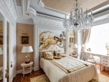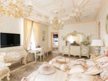- Pour les amateurs de sophistication, limités par des mètres carrés, nous pouvons recommander le néo-baroque. Ce style a quelque chose en commun avec le principal, mais peut être utilisé pour les petits espaces.