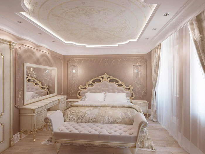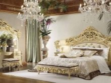 - La chambre baroque a l'air luxueuse et sophistiquée. Un tel intérieur souligne le statut élevé et le goût impeccable des propriétaires des lieux. Ce n'est pas un hasard si ce style a longtemps été considéré comme un style de palais.