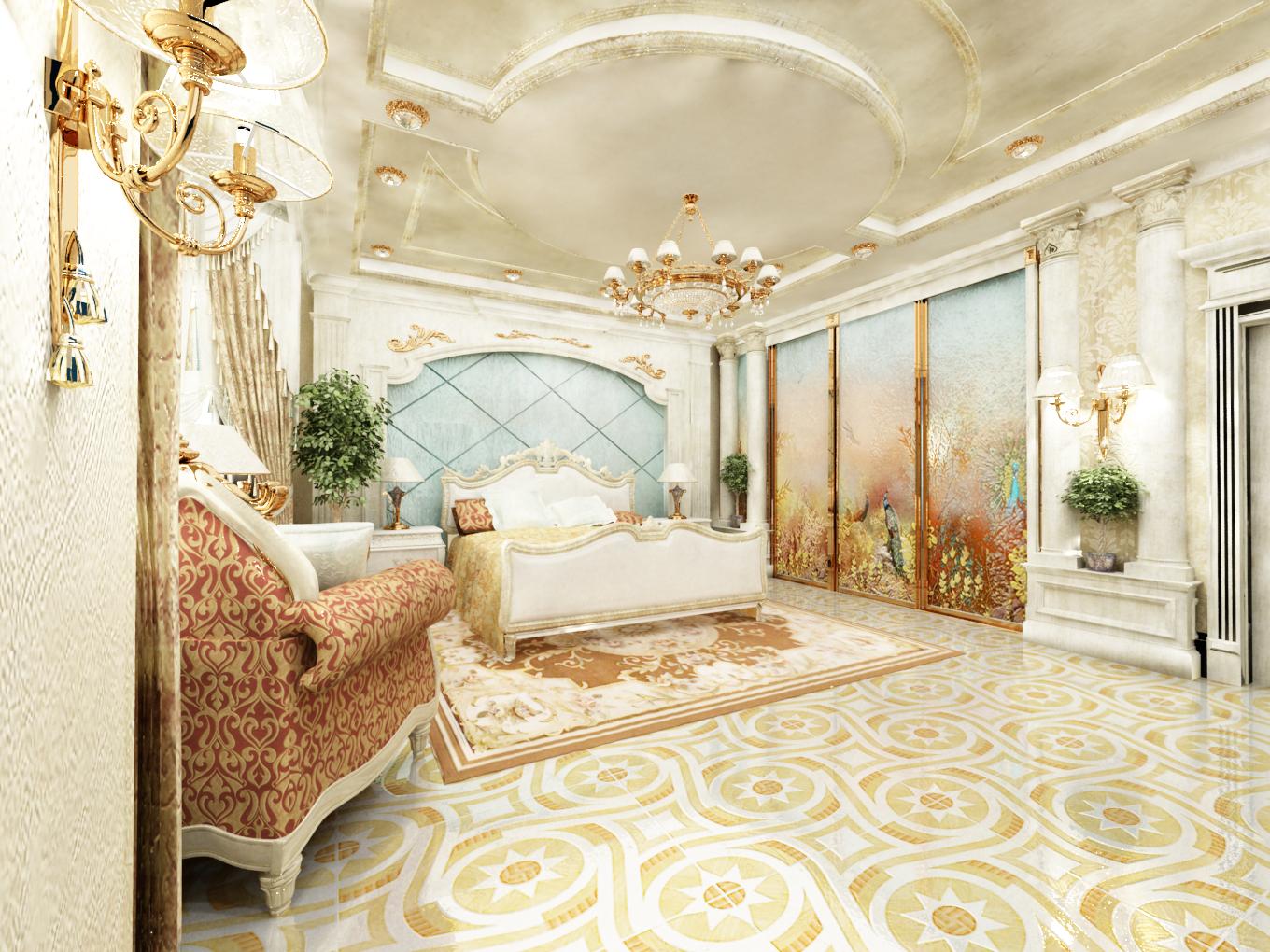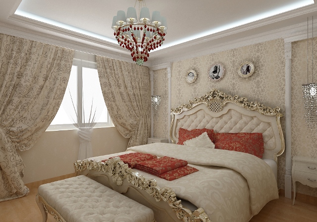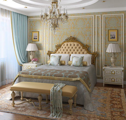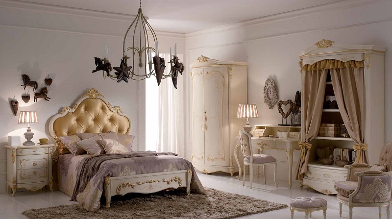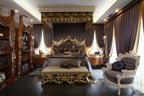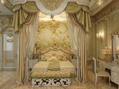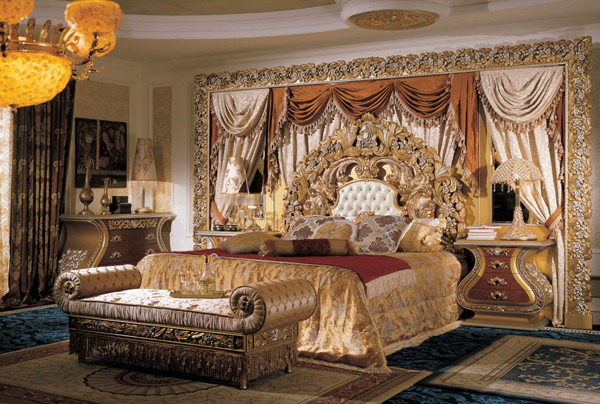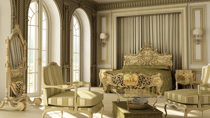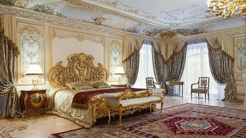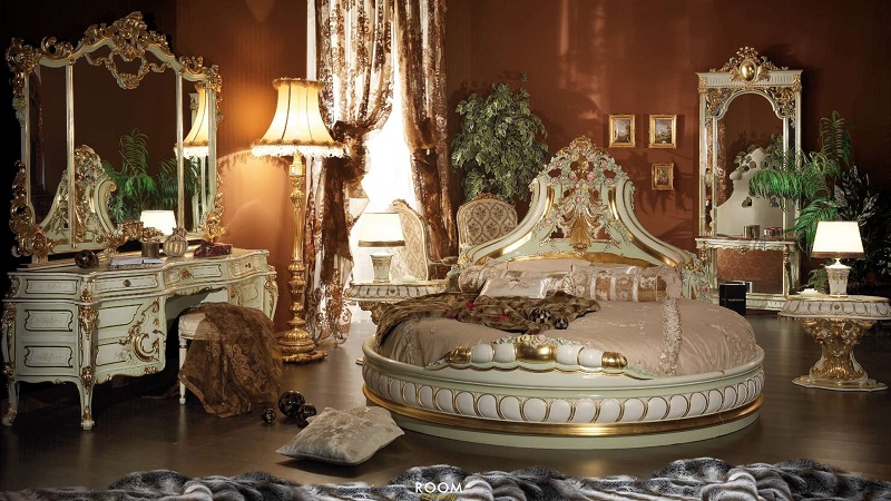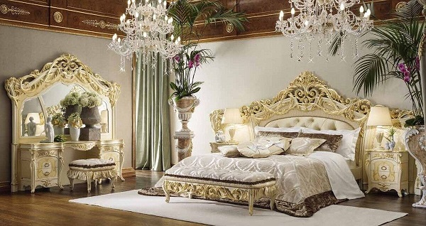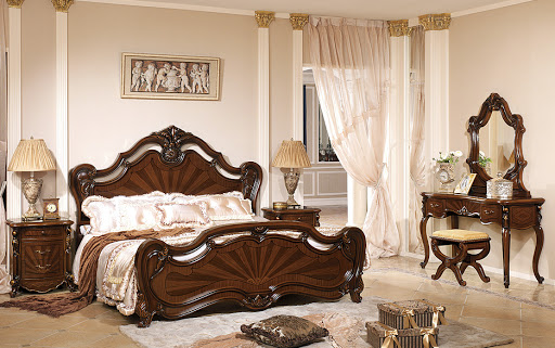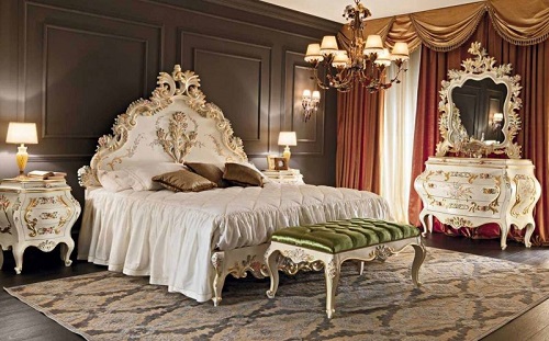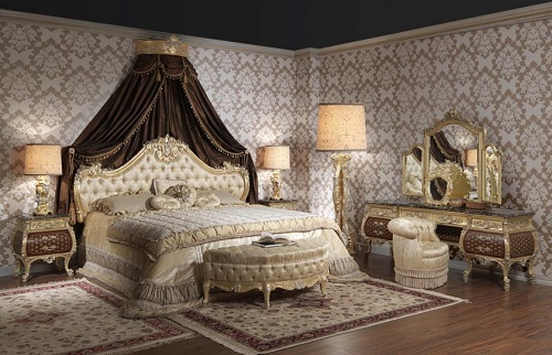 - L'ensemble de meubles doit être fait de bois d'élite, l'intérieur de la pièce est construit autour d'un lit luxueux.