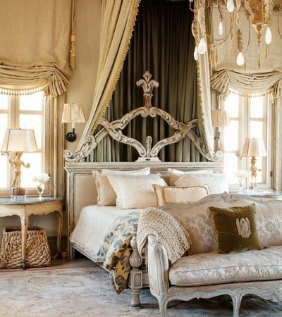 Les rideaux sont ornés de glands dorés et de lambrequins duveteux, décorés d'appliques et de broderies luxueuses.