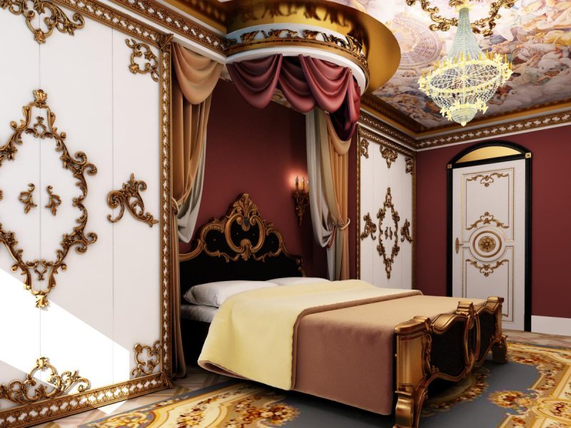 Le style baroque est associé à la richesse, la sophistication et le luxe. Il est devenu à la mode sous le règne de Louis XIV. Le style se caractérise par un faste excessif associé à une riche gamme de nuances et à une abondance de décor. Cette conception nécessite de l'espace libre, c'est pourquoi la création d'un tel intérieur dans une chambre n'est pas accessible à tout le monde.