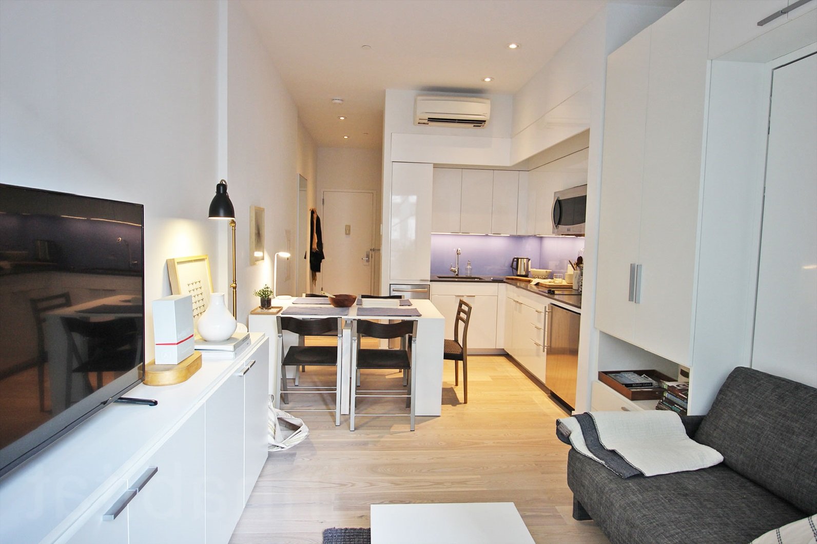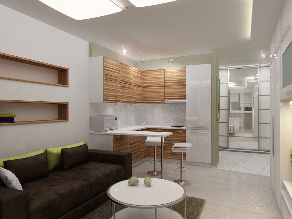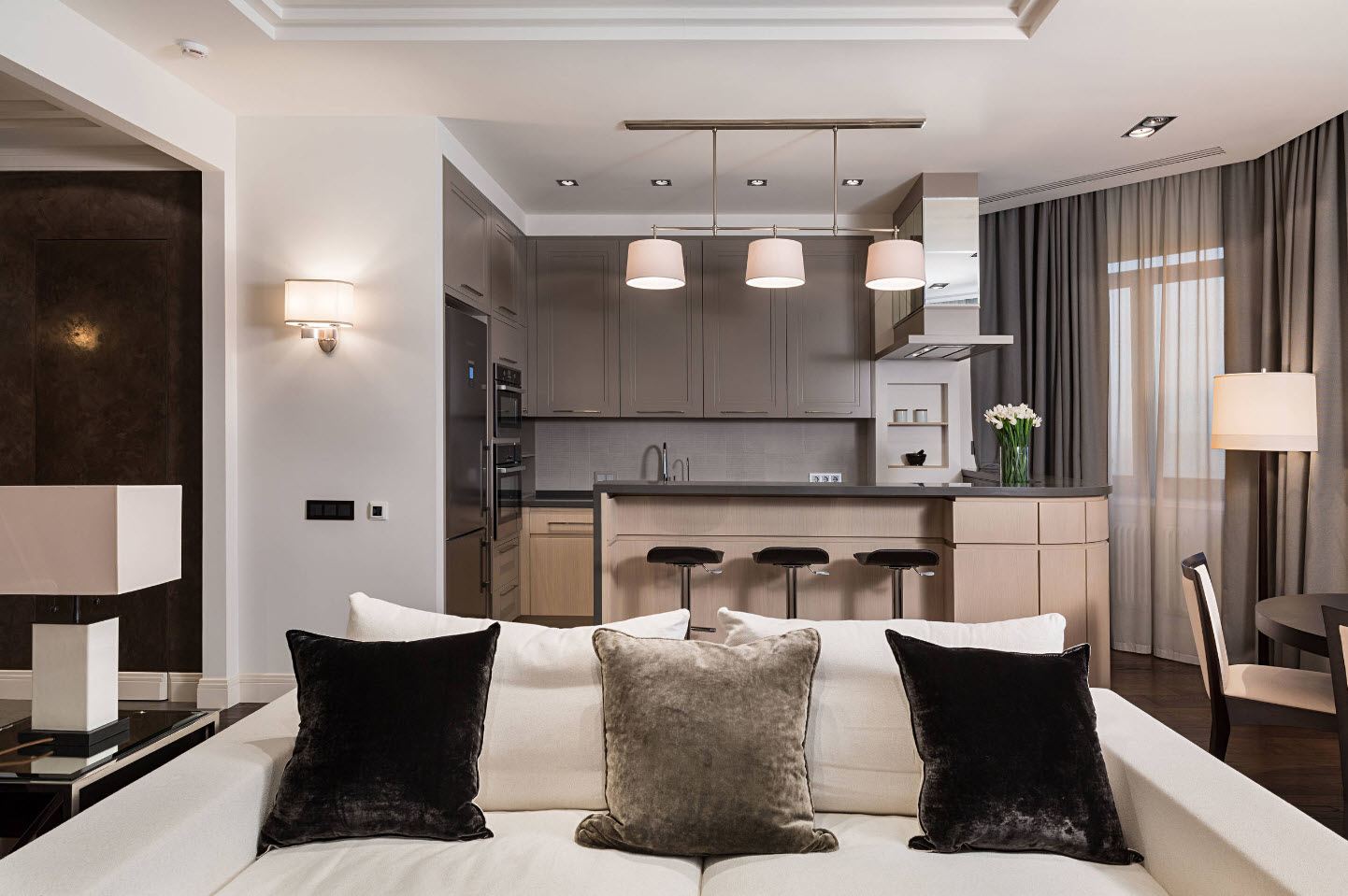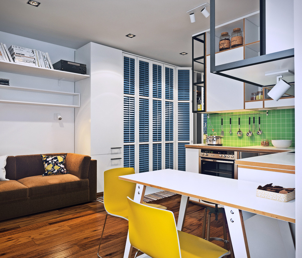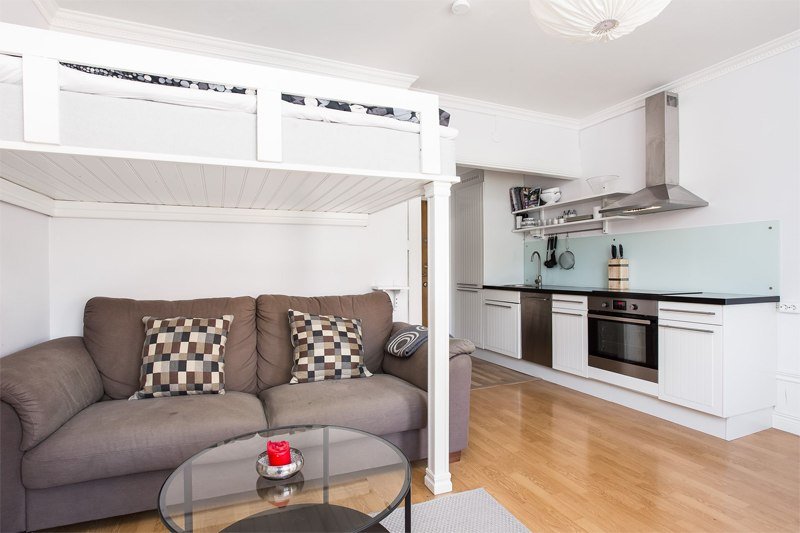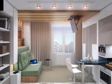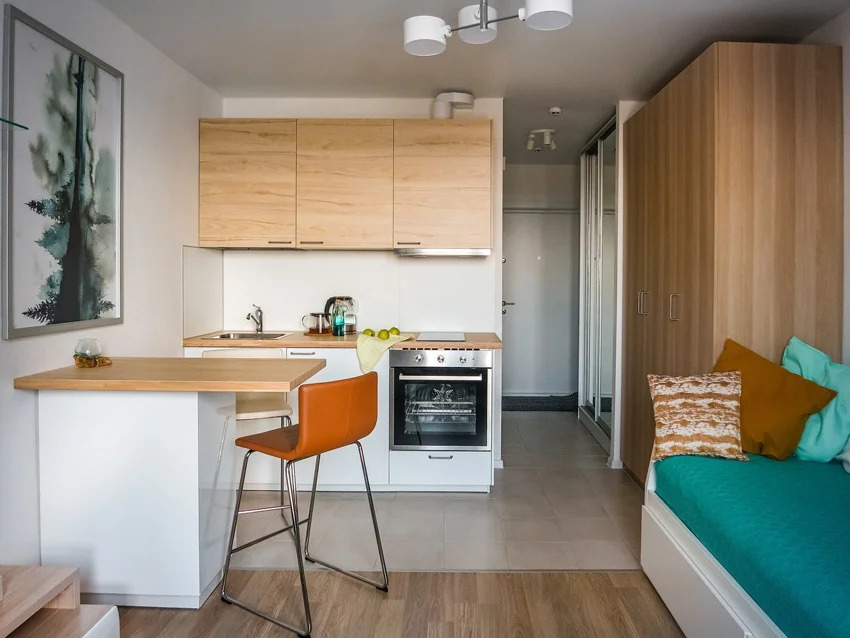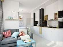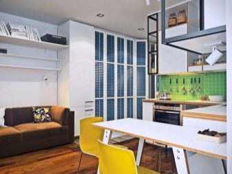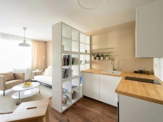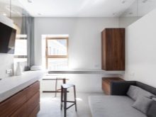 - Appartements bachelor. Dans de tels appartements, il n'y a généralement pas de chambre à coucher, les zones principales sont la cuisine et le salon. Au lieu d'un lit, l'appartement dispose d'un canapé convertible.
