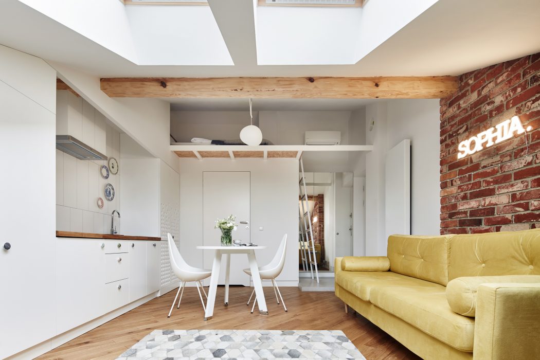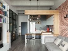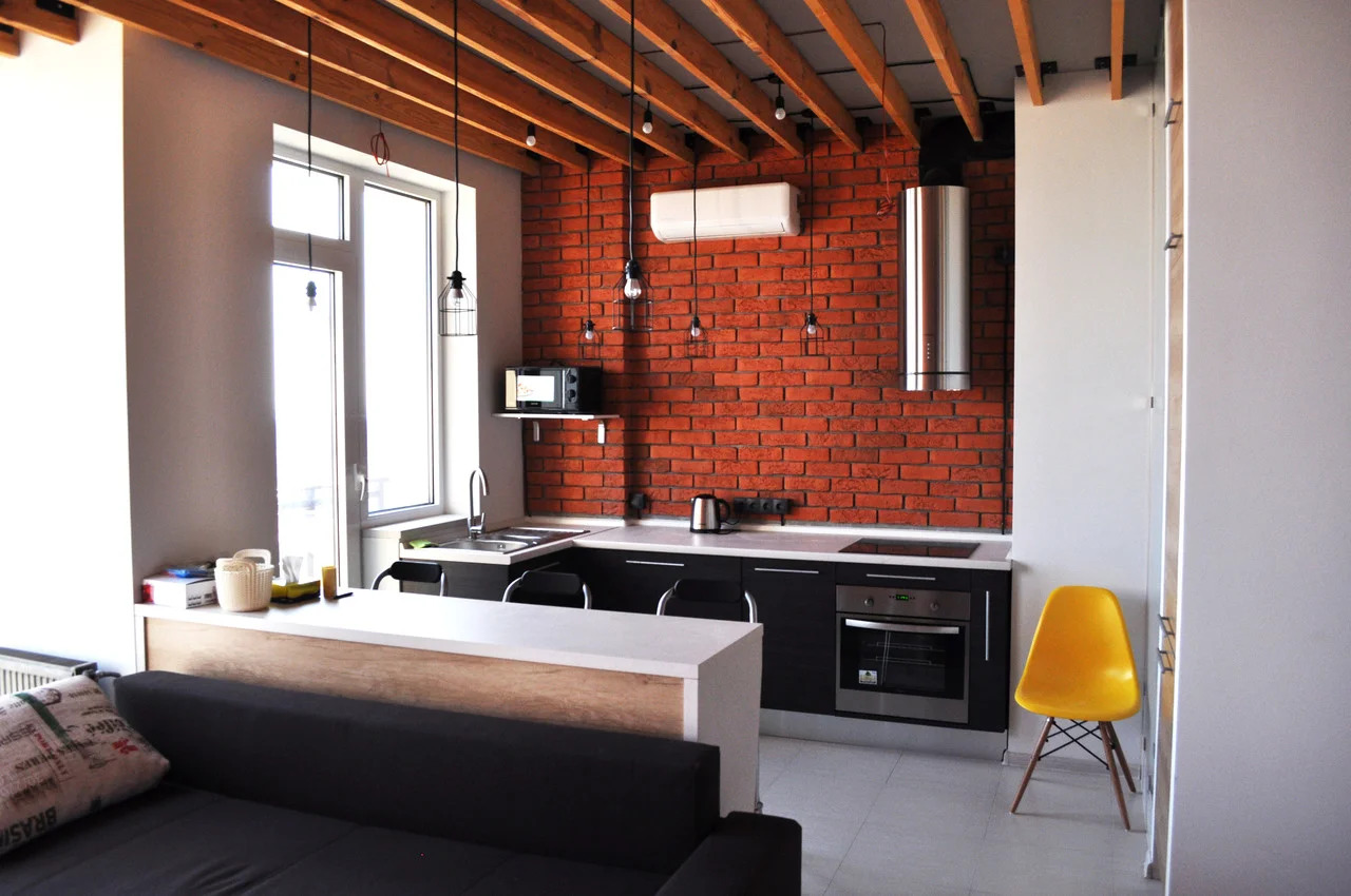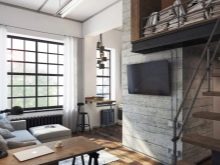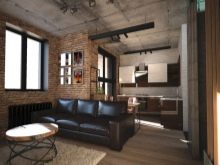 - Un autre exemple est un studio de style loft. Le design s'est avéré être confortable et accueillant. Ces studios conviennent aux amoureux des invités.