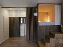 - Appartement introverti. Si le propriétaire du studio n'envisage pas d'accueillir fréquemment des invités, l'espace nuit peut être organisé dans un espace commun. Si vous le souhaitez, la zone peut être clôturée avec un support ou un écran décoratif.