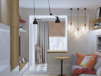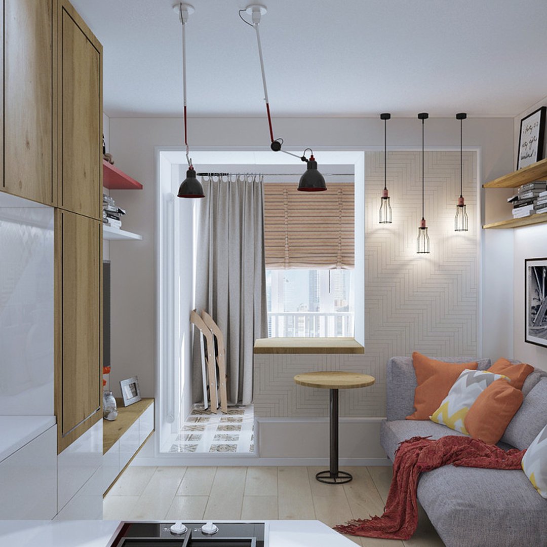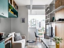- Si le studio dispose d'un balcon ou d'une loggia, l'espace supplémentaire peut être utilisé pour accueillir un espace de loisirs ou un bureau.