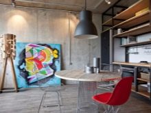 - Grenier. Récemment, les designers ont choisi ce style pour aménager un studio. Caractéristiques typiques d'un loft : finition brute, miroirs, mobilier monochrome clair. Malgré le contraste prononcé, tout semble assez organique ensemble.