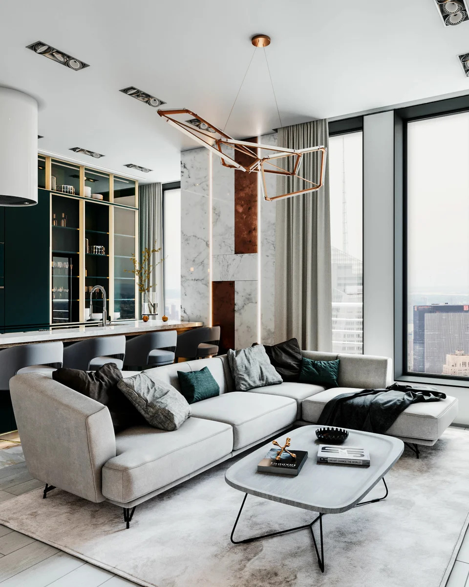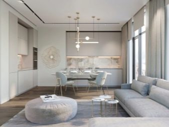 - Le design du studio au style contemporain conviendra à ceux qui aiment expérimenter. Le mélange de différents designs crée un résultat unique. Grâce à cette approche, les concepteurs parviennent à créer un grand nombre de projets individuels.