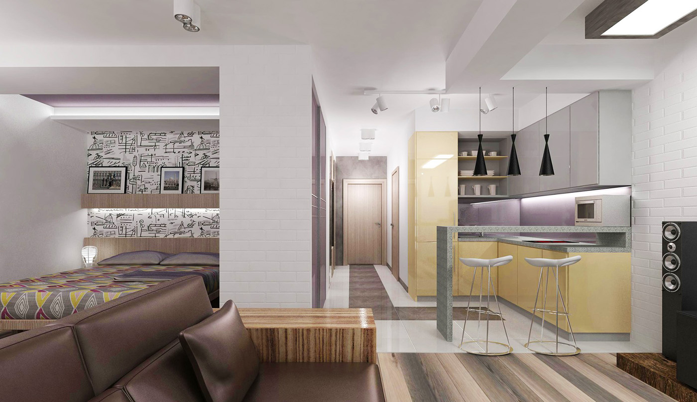 La conception du studio doit être aussi réfléchie que possible afin que l'appartement soit non seulement confortable et beau, mais aussi confortable et fonctionnel. Avec la bonne approche, un petit espace peut être rendu attrayant et en même temps utiliser chaque mètre carré.
