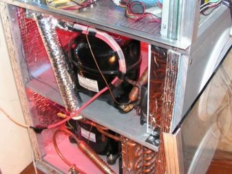 Et vous devriez également penser à l'emplacement de l'unité de réfrigération. Il doit être situé non seulement dans un endroit sûr, mais également être combiné avec l'intérieur environnant.