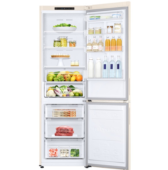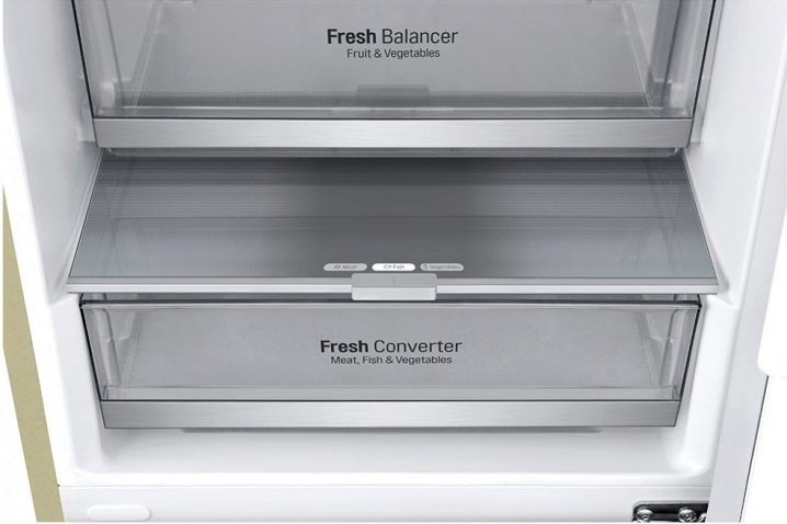 LG GA-B459SBDZ. Le modèle coréen innovant mérite une attention particulière. Le compartiment réfrigérateur a une ouverture pour l'air froid dans le plafond. Cela vous permet de protéger les aliments de la chaleur et de maintenir des indicateurs de température constants.