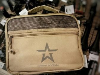 Comme déjà dit, le principal fabricant de sacs de voyage militaires est Voentorg... Son produit se distingue par son agréable couleur sable, son étoile à cinq branches et l'inscription "Armée de Russie". Néanmoins, des produits d'autres fabricants peuvent être trouvés sous forme de "sac à cosmétiques pour hommes" ou pour des conditions de terrain.