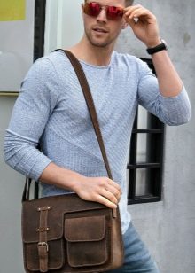 - Sacs messagers (sacs). S'intègrent à l'origine à n'importe quel look masculin, ils sont fabriqués à partir d'un matériau durable avec une base structurée. Les produits en cuir et en textile sont particulièrement populaires, qu'il est recommandé d'acheter pour l'été.