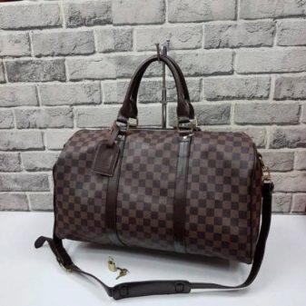 - Concevoir. Les sacs de voyage et de voyage pour hommes modernes ont le plus souvent une surface texturée avec une impression en forme de peau de reptile ou une couleur lisse et unie. Au fil du temps, un tel accessoire acquiert une usure noble. Les sacs dans un style écossais traditionnel ou en damier semblent intéressants. Les modèles à partir d'une combinaison de tissu et de cuir sont considérés comme les plus polyvalents, adaptés aux voyages d'affaires et privés.
