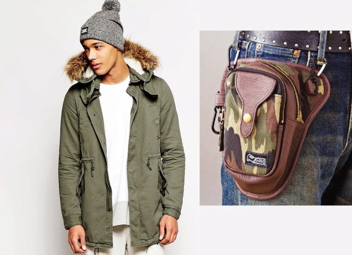 - S'il est ajusté, une bonne option serait de mettre le sac sur un manteau ou une veste à la taille. Dans ce cas, l'accessoire peut souligner le physique sportif de son propriétaire. La couleur de l'article de garde-robe décrit pour hommes est choisie en fonction de la palette de couleurs du reste des éléments de l'image.
