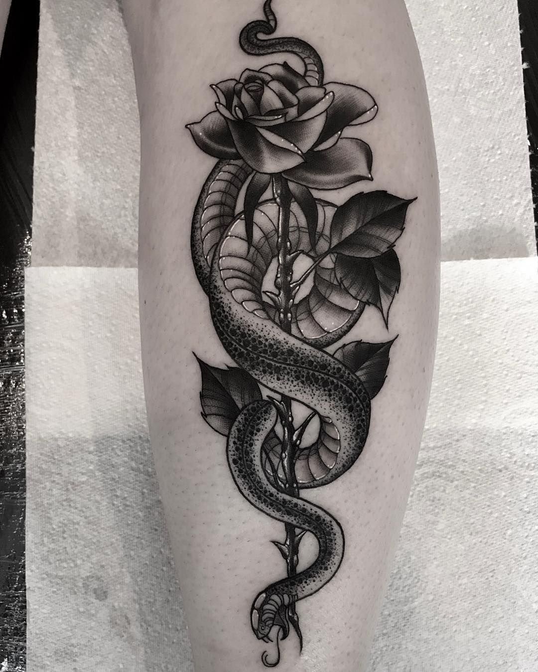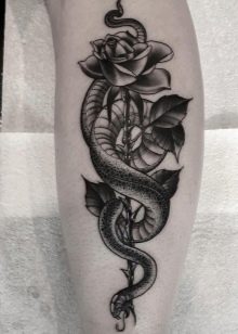 Serpent sur les tatouages est traditionnellement un symbole de tentation. En combinaison avec une fleur, elle dira qu'une personne est facile à séduire.