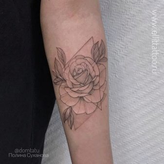 Style de géométrie pour de tels tatouages convient également, car l'abondance de formes géométriques donne au tatouage un certain zeste, le rend non standard. De plus, les formes géométriques choisies affectent également le sens de l'image corporelle. Ainsi, un grand nombre de lignes lisses indiquera un caractère doux et flexible. L'abondance des angles vifs, au contraire, parle d'une disposition impulsive et dure.