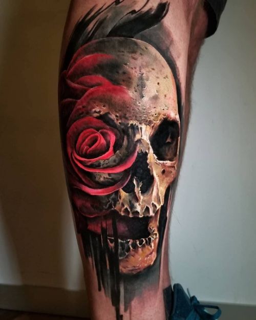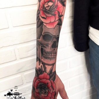 Donc si la rose est dans les dents du crâne, alors cela suggère que le porteur de l'image est caractérisé par la frivolité, la passion et une vision positive de la vie. Et si la fleur est située aux endroits des orbites, alors cela indique une personne sûre d'elle qui ne doute pas de lui-même ou de ses talents.