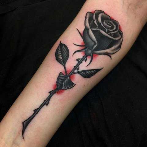 - S'il y a un dessin sur le corps humain avec une rose noire alors, dans la plupart des cas, cela indique une douleur intense causée par la perte d'une personne chère. En règle générale, un tel dessin est appliqué sur leur corps par les personnes qui souhaitent exprimer leur respect pour la personne décédée. Mais il y a un autre sens : dans certains cas, une fleur en noir signifie la fin des difficultés et le début d'une bande blanche.