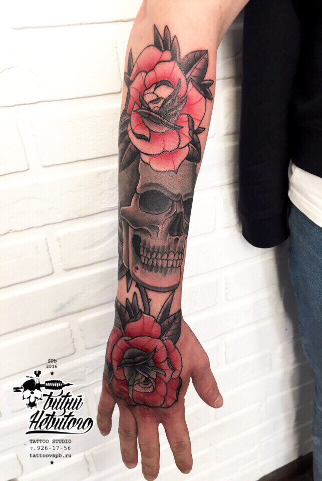 Assez souvent, les hommes placent de tels dessins sur la main, sur l'avant-bras, sur le poignet, sur la "manche" ou sur la paume. Le choix de la zone dépend uniquement de l'échelle de l'image.