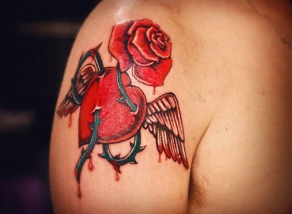Le cœur dans de telles images est souvent perçu comme un symbole d'amour et de sentiments éternels, dans lequel un homme plonge tête baissée. Cependant, dans certains cas, un tel tatouage symbolisera une rupture assez douloureuse avec un être cher, qui a fait souffrir une personne.