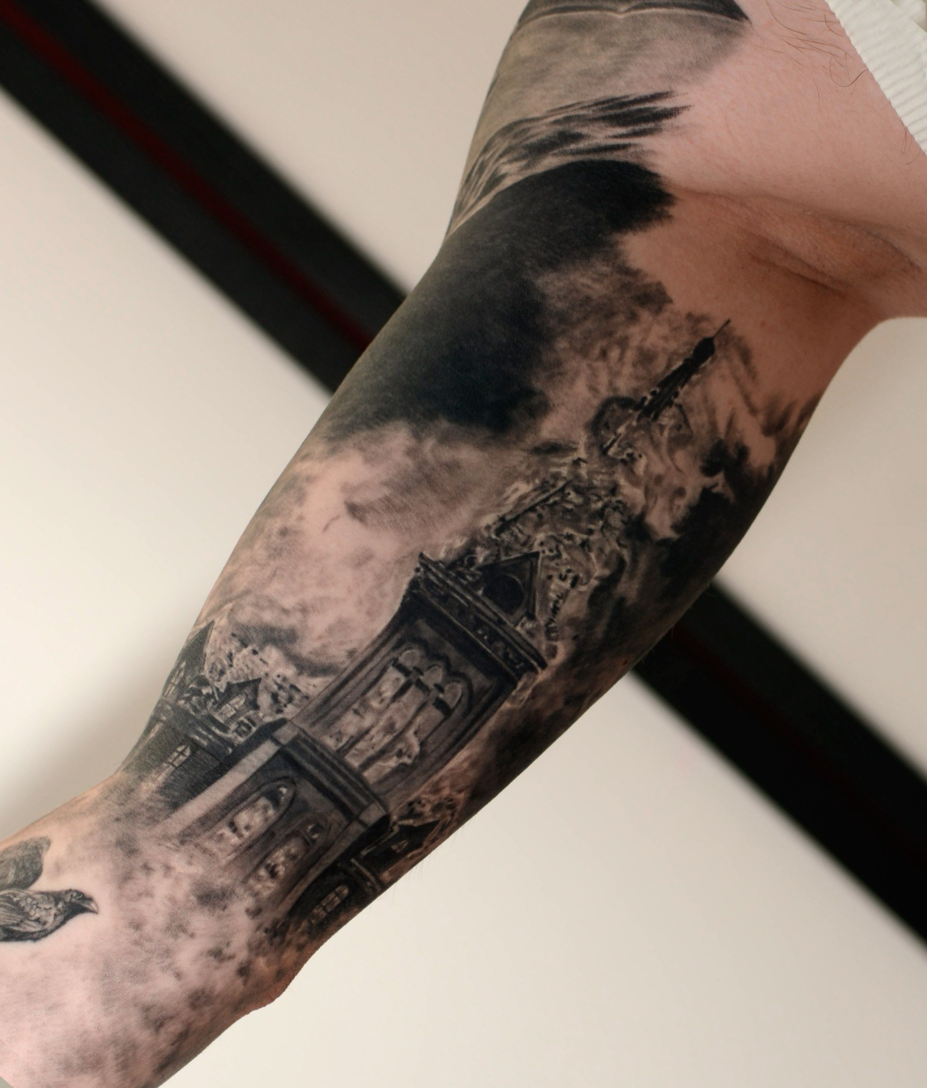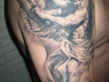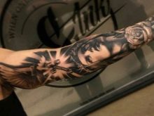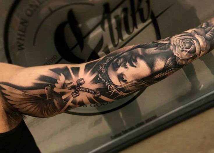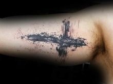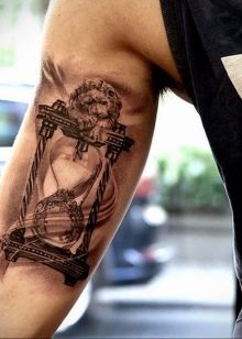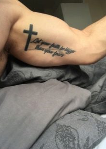 Assez souvent, des motifs religieux sont également présents sur de tels tatouages. Dans ce cas, la figure représente une croix, des anges, un peu moins souvent - des visages divins. En appliquant un tel dessin sur leur corps, les gens ont généralement tendance à souligner leur appartenance à une religion ou à une autre, mais dans certains cas, ces images peuvent avoir une interprétation différente - cela dépend des préférences et des points de vue du propriétaire du dessin.