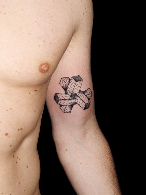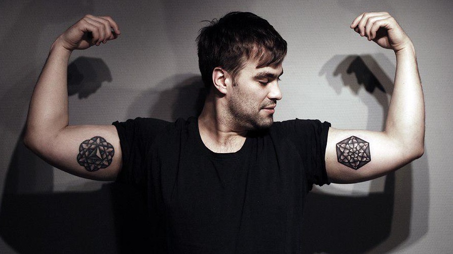 Les tatouages faits dans le style dotwork sont également très intéressants sur les biceps. Pour beaucoup, cette direction n'est pas standard, ce qui s'explique par la manière inhabituelle de dessiner un motif : il est transféré sur la peau à l'aide d'un certain nombre de points, tout en les plaçant à une certaine distance les uns des autres.
