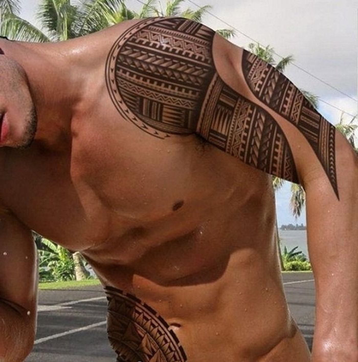 Le style polynésien conviendra également à de tels tatouages. Il se caractérise par : une abondance de motifs différents, des lignes claires. En règle générale, un tel dessin est réalisé en noir et les motifs eux-mêmes ont une certaine signification.
