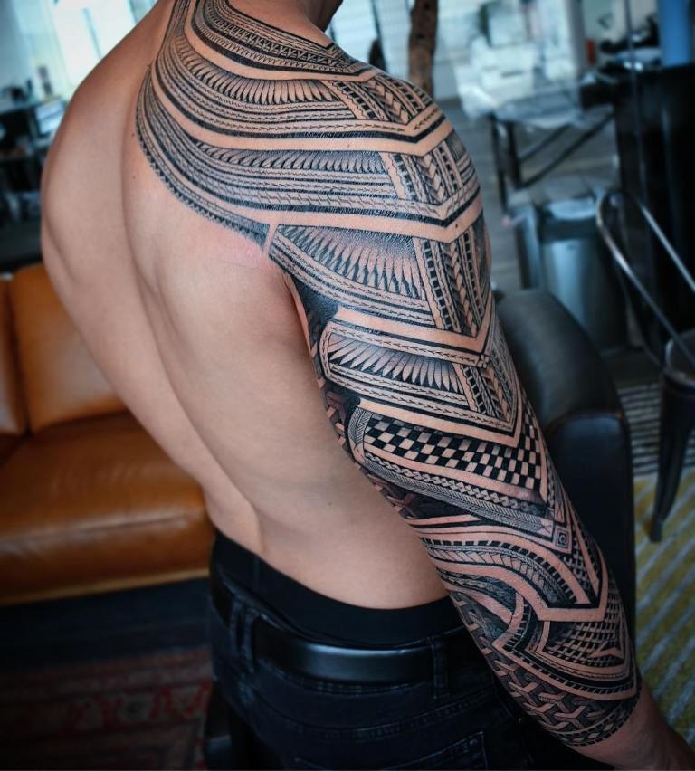 Les motifs polynésiens, dominés par des contours clairs, un grand nombre de lignes pointues, de rayures et de formes géométriques, sont également spectaculaires dans ce domaine. En Polynésie, qui est d'ailleurs le berceau de l'art du tatouage, de tels dessins n'étaient pas appliqués pour des raisons esthétiques, mais pour se protéger des problèmes et des malheurs divers. À l'heure actuelle, un tel dessin peut servir à la fois de décoration et de talisman.