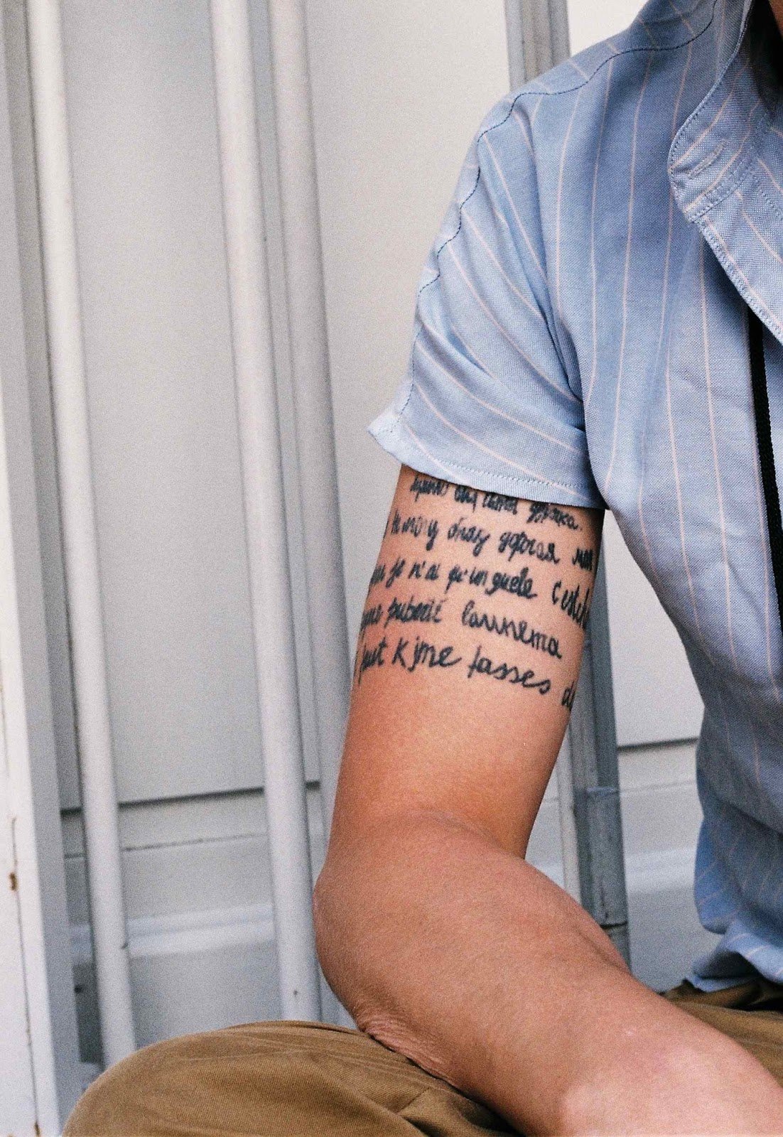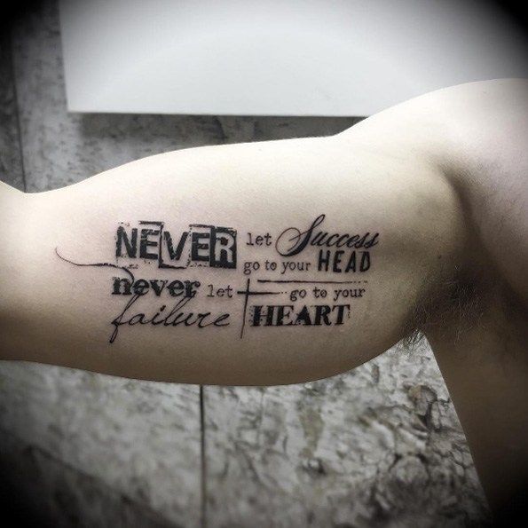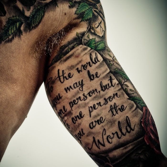 Donc, beaucoup de gens préfèrent les dessins sous forme d'inscriptions - il peut s'agir d'une citation de quelqu'un, d'une ligne d'une chanson, du nom d'un être cher ou même d'un extrait d'un grand texte. La signification d'un tel tatouage variera en fonction du contenu écrit. L'inscription elle-même peut être effectuée de différentes manières - cela dépend de la police choisie, de la taille du tatouage et des caractéristiques du dessin lui-même.