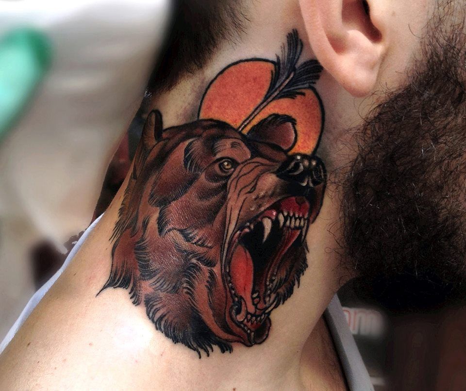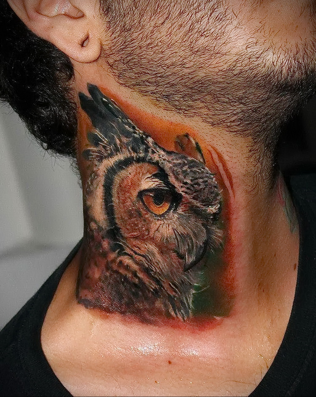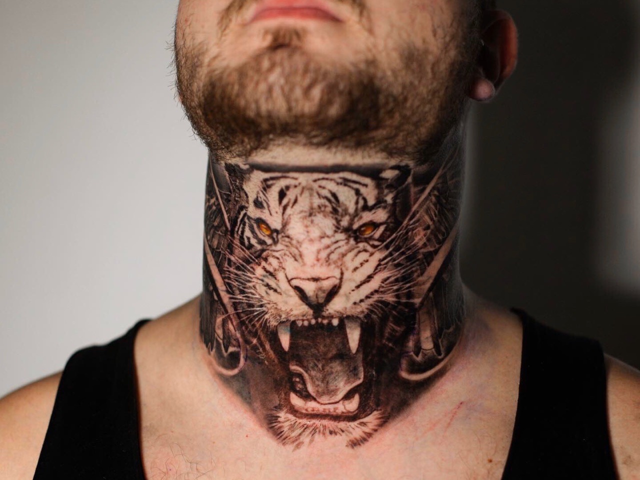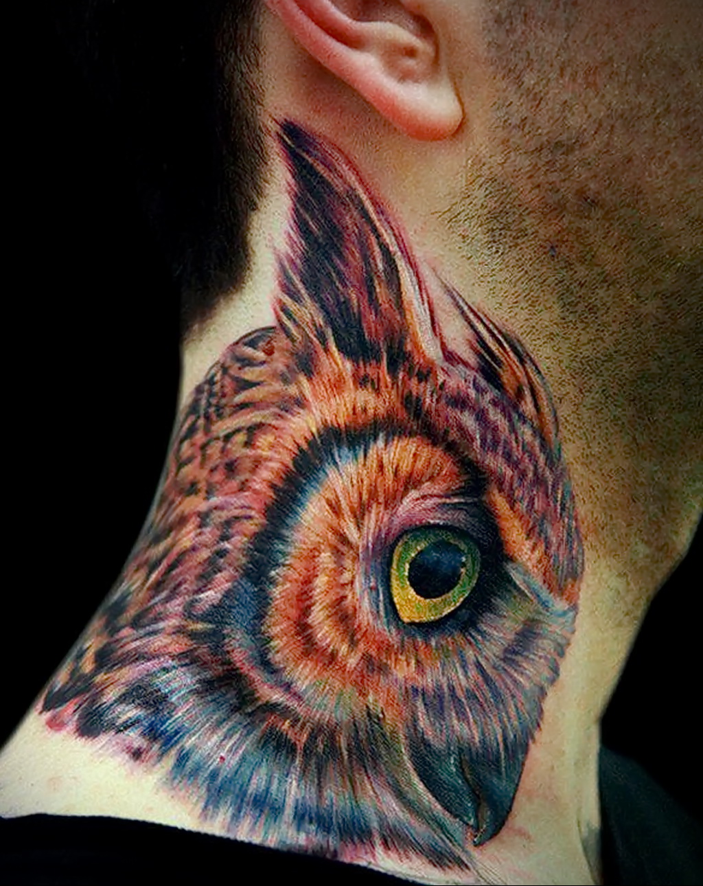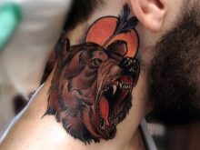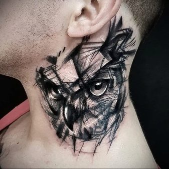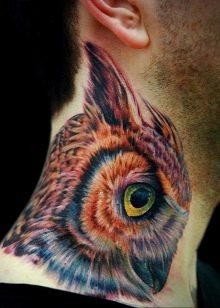 Le réalisme vous permet de décorer votre cou avec des motifs en trois dimensions. Il peut transmettre non seulement l'éclat dans les yeux de l'animal, mais aussi l'expression de son regard. Dans le même temps, la taille du tatouage peut être très diverse.