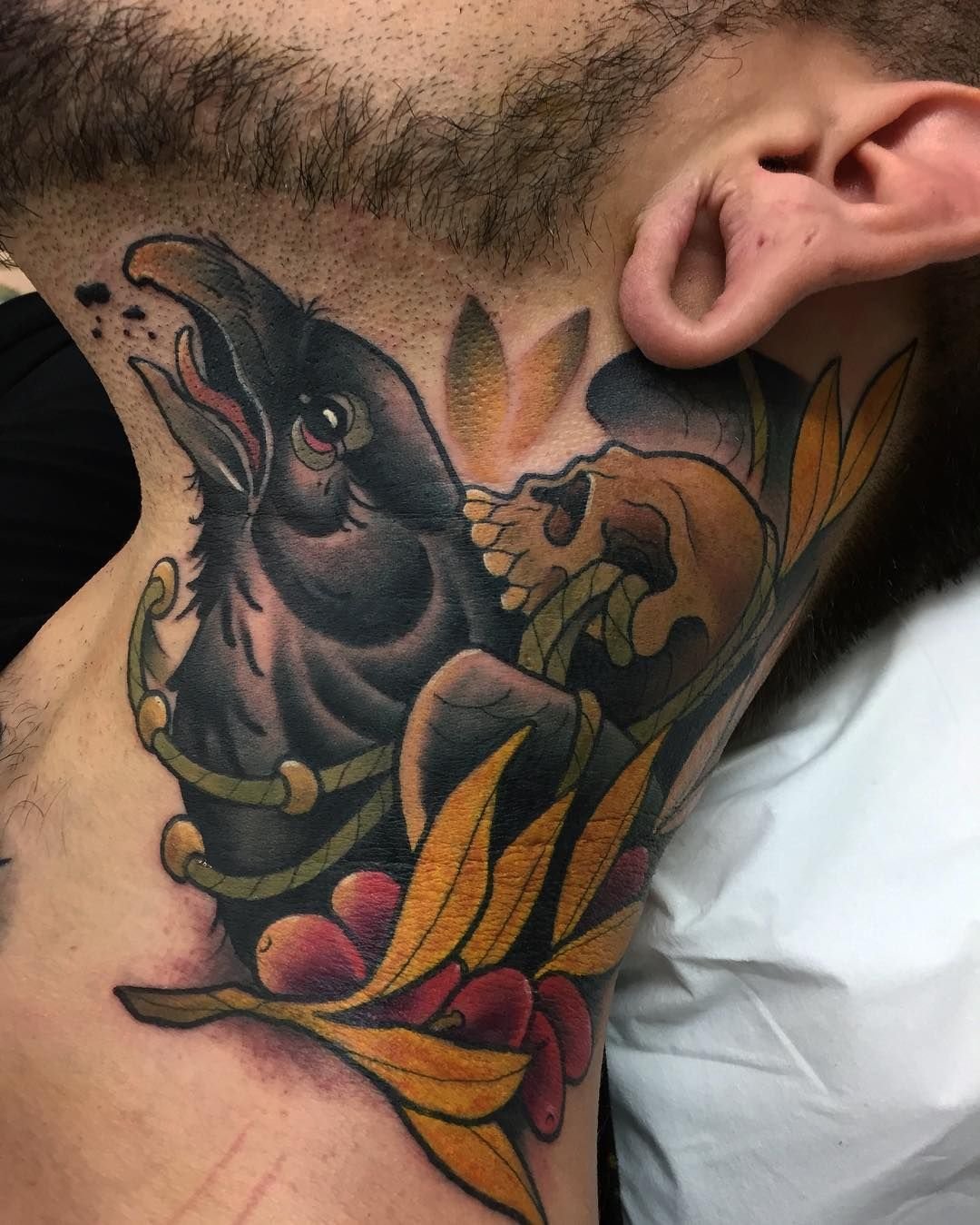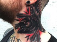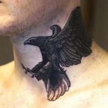 - le corbeau représenté sur le cou est défini comme un symbole d'indépendance, prêt à défendre ses positions dans la vie;