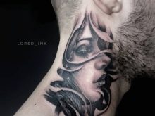 Aujourd'hui, il est à la mode de farcir des tatouages réalistes en utilisant des accents colorés.