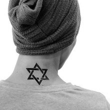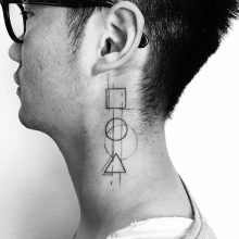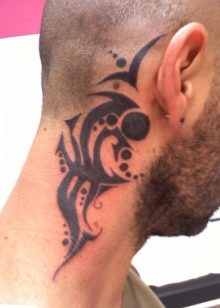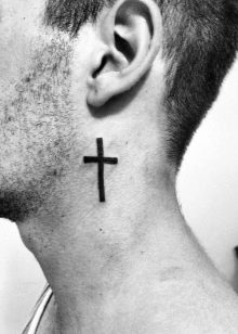 Lors du choix d'un endroit pour un dessin, tenez compte de la quantité de travail. Par exemple, il est préférable de placer des petits tatouages sur le cou sous l'oreille. Les motifs géométriques, les petites croix, les inscriptions, les hiéroglyphes ont fière allure dans cet endroit.