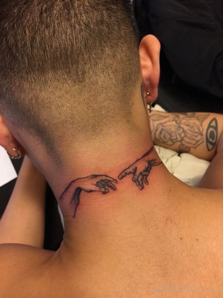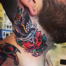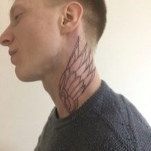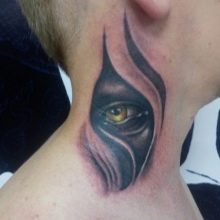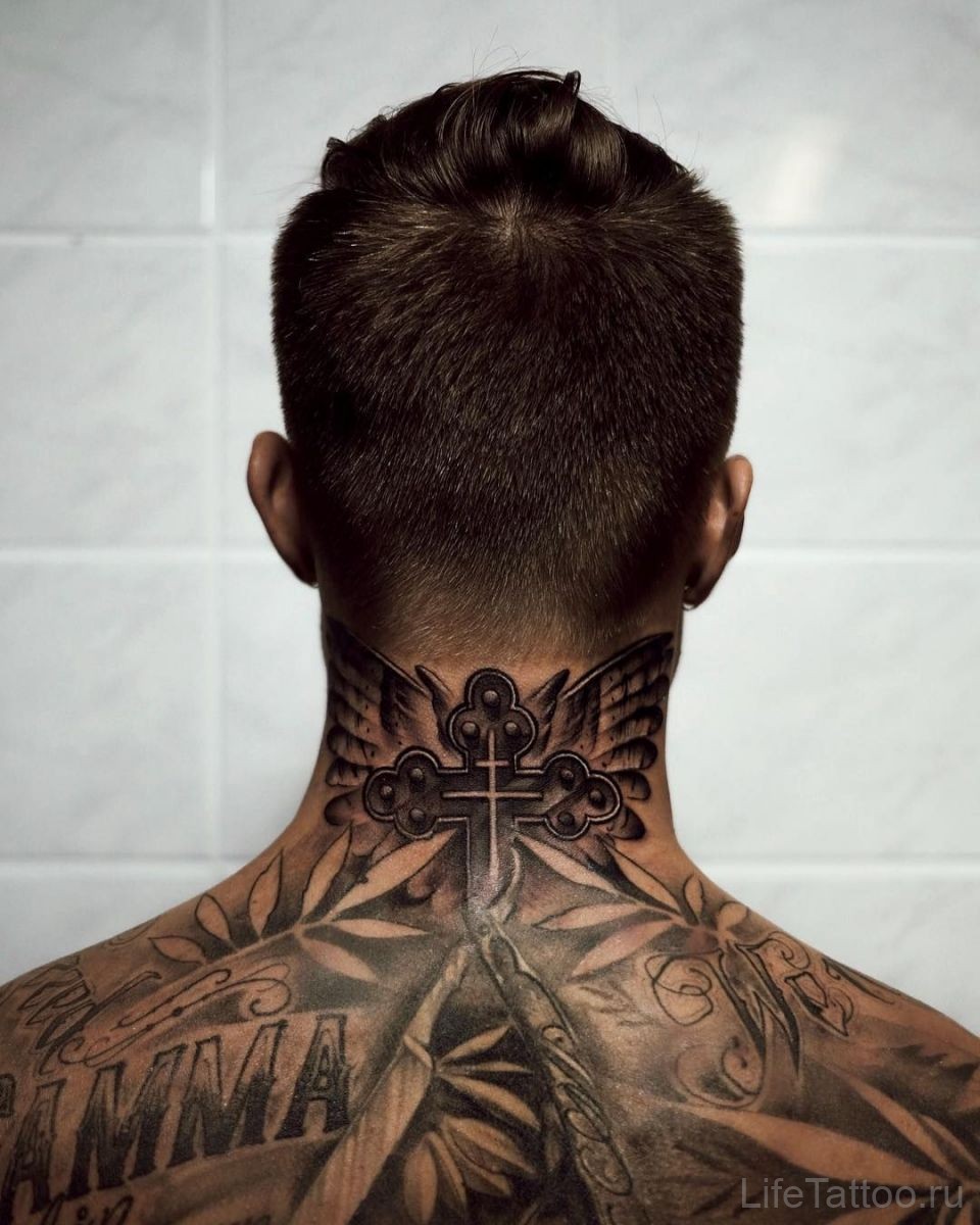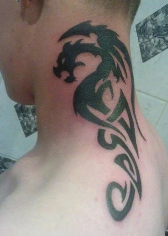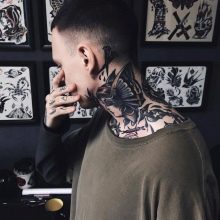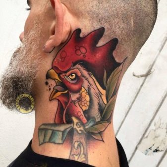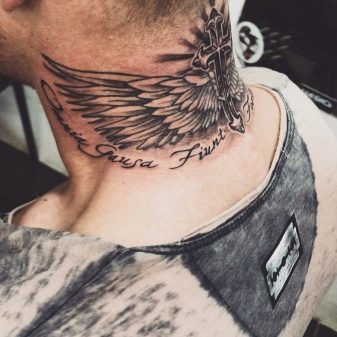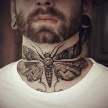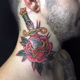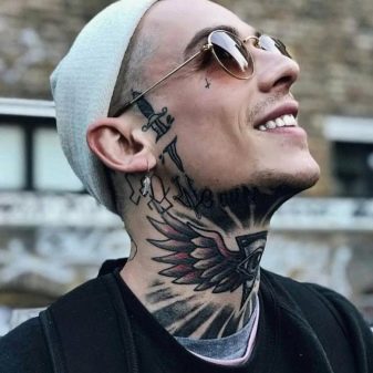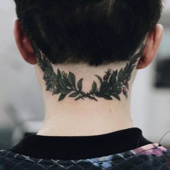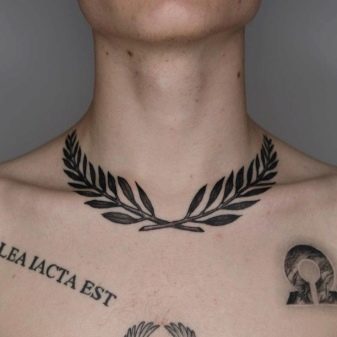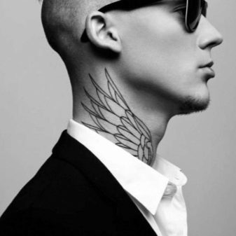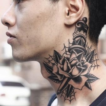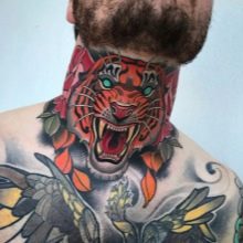 La zone du cou est une toile pour le manifeste représenté, un certain symbolisme. C'est assez diversifié, variable dans le choix des solutions stylistiques et chromatiques, la taille. Dans ce cas, le tatouage peut aller sur l'épaule, l'avant-bras, la poitrine, le dos. Parfois, cela fait partie de la technique du costume de l'art corporel. Il est visible sous les vêtements, ce qui ne correspond pas aux normes du dress code classique.