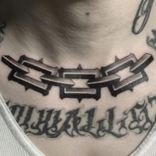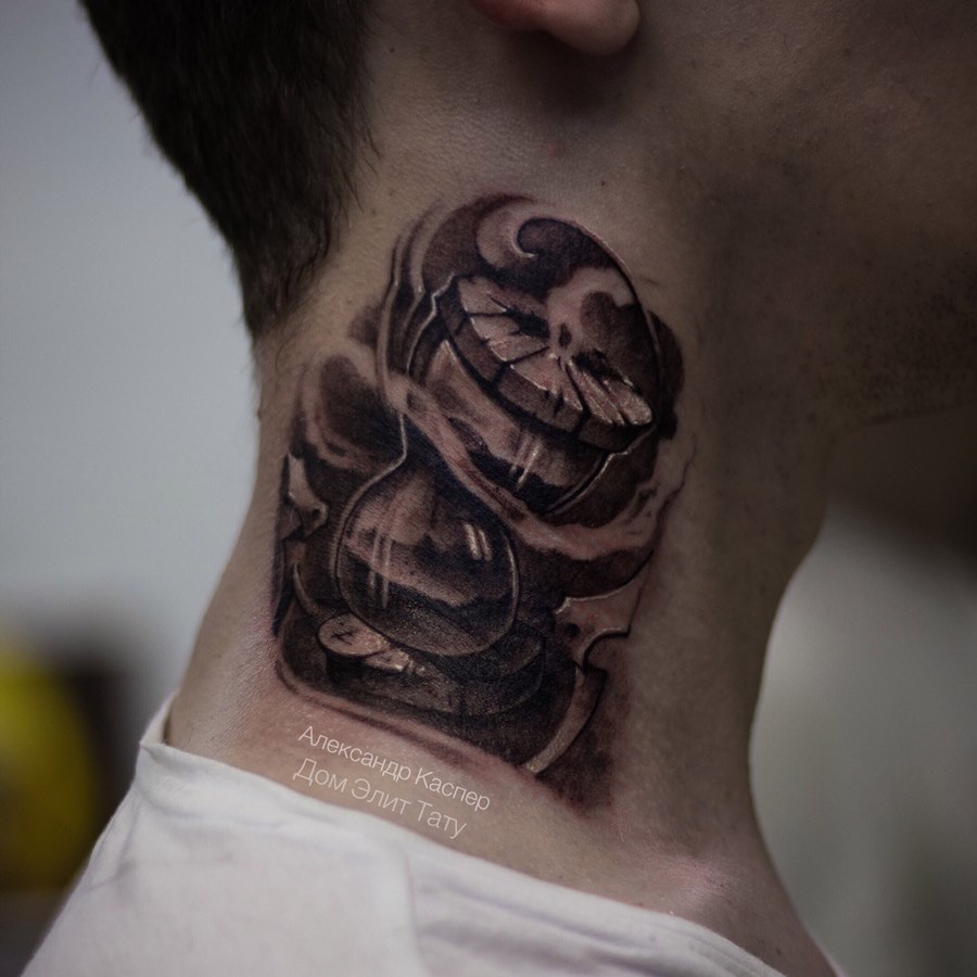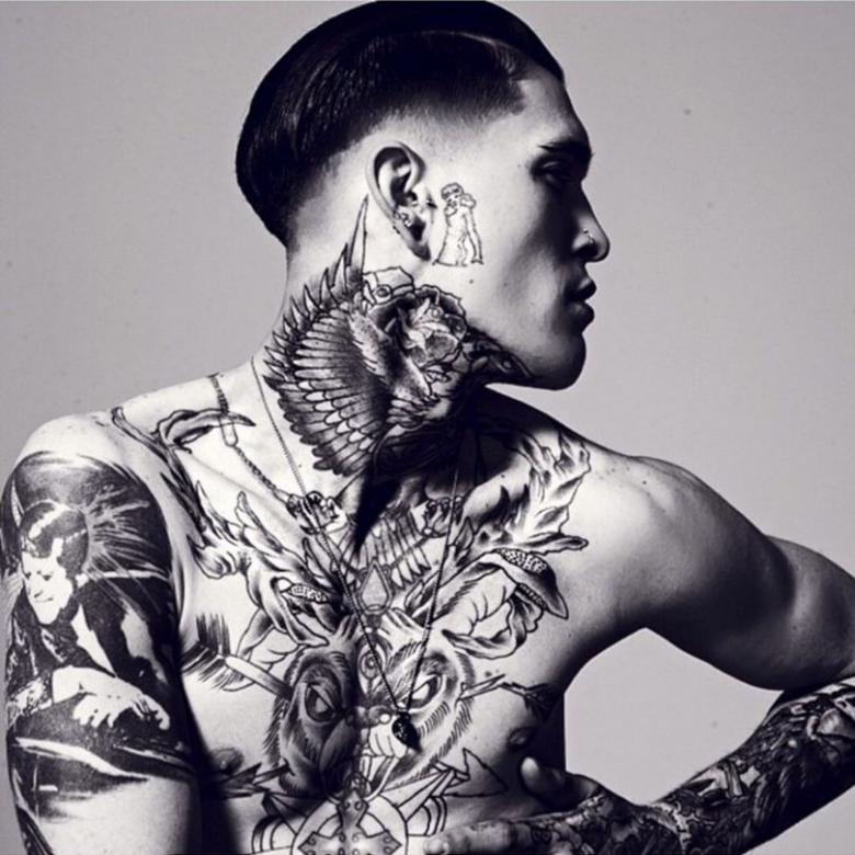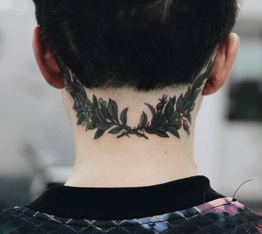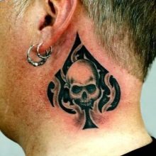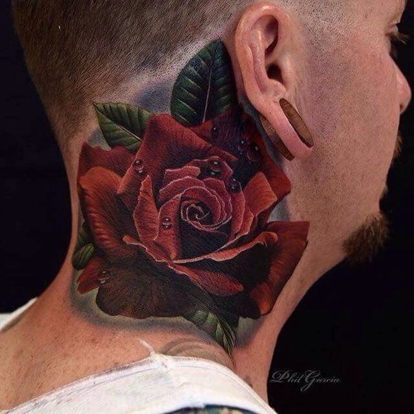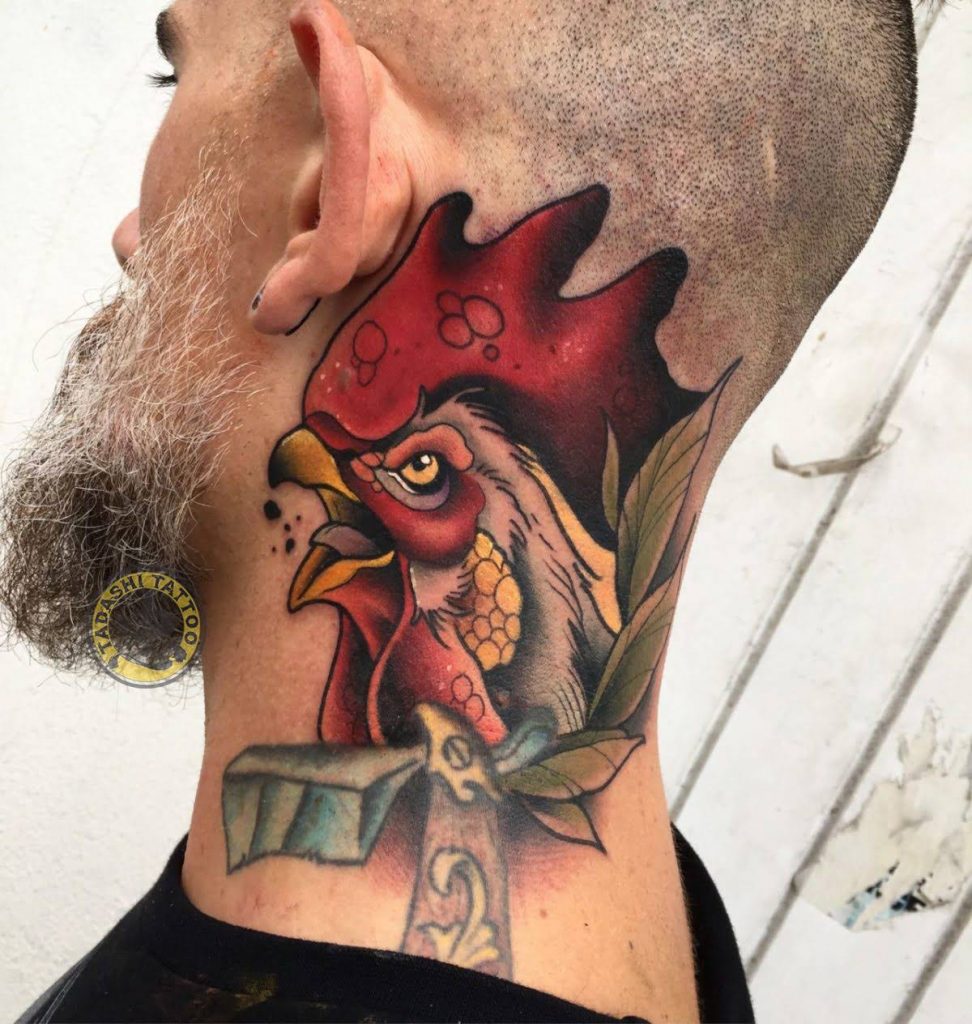 La zone du cou est une toile pour le manifeste représenté, un certain symbolisme. C'est assez diversifié, variable dans le choix des solutions stylistiques et chromatiques, la taille. Dans ce cas, le tatouage peut aller sur l'épaule, l'avant-bras, la poitrine, le dos. Parfois, cela fait partie de la technique du costume de l'art corporel. Il est visible sous les vêtements, ce qui ne correspond pas aux normes du dress code classique.