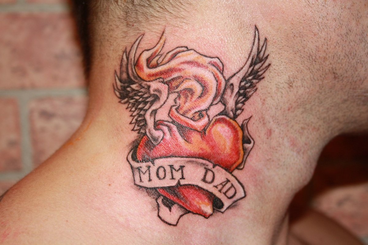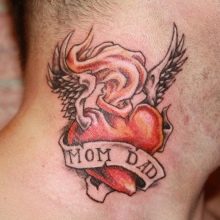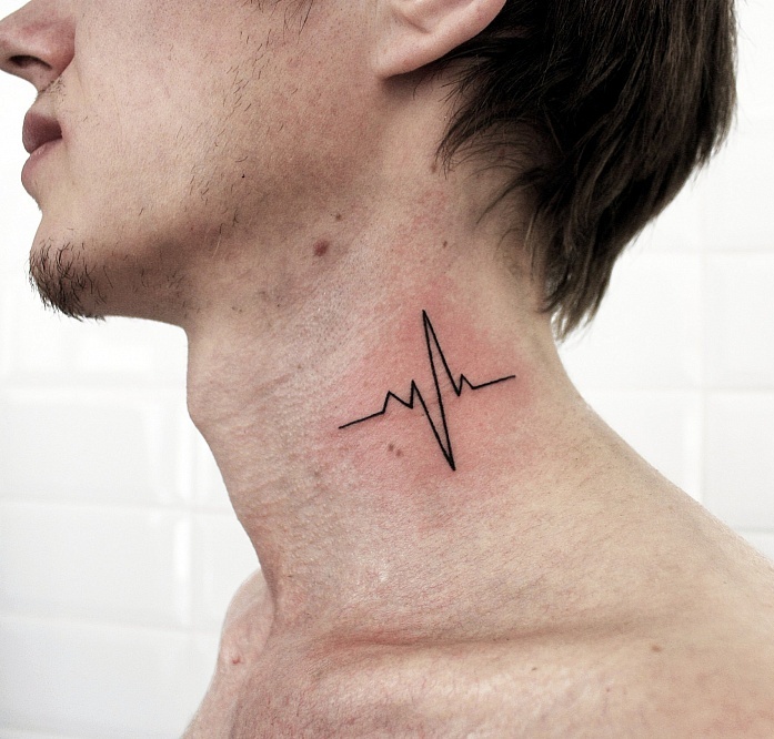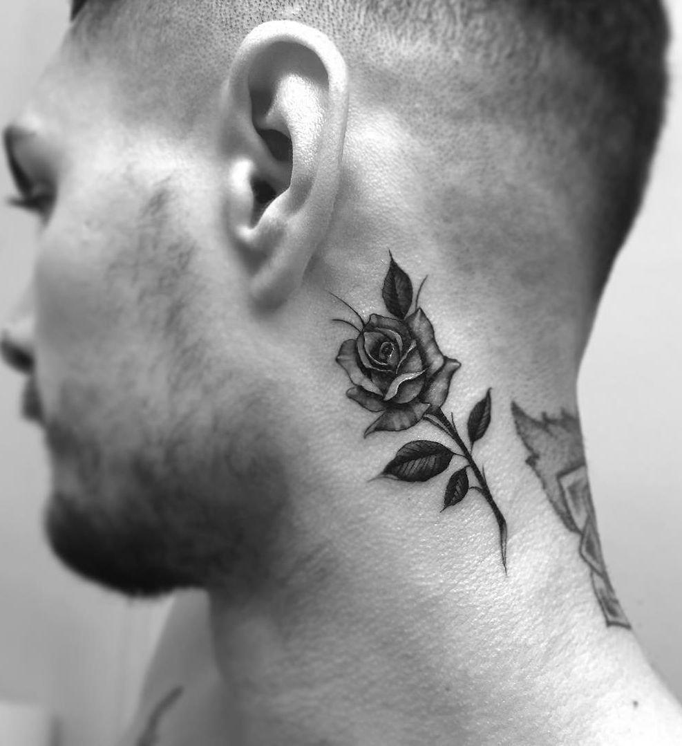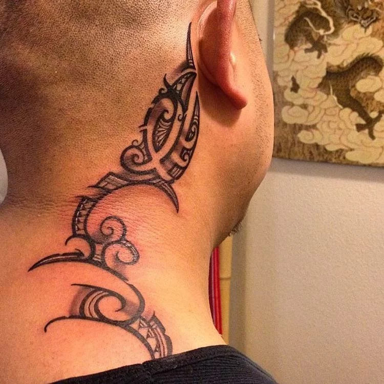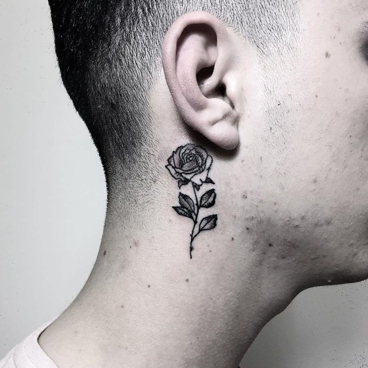 Le positionnement sur la nuque est préférable pour les petits croquis. C'est un endroit classique pour le premier tatouage d'un homme, qui peut être recouvert de vêtements au besoin.